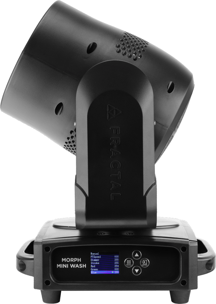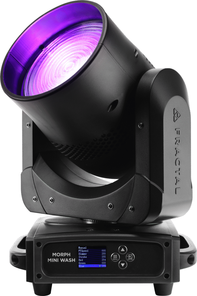 The Fractal Morph MINI PIX WASH is an LED/Wash head that combines modern technology with a classic theatrical character. Thanks to its Fresnel lens, it offers an even light beam, stylistically referencing old theatrical spotlights.