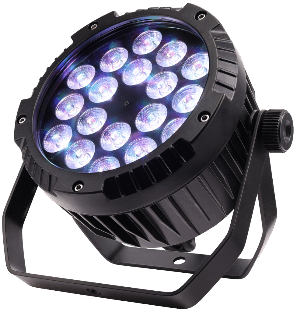 Par wyposażony został w 18 diod LED 6w1 o mocy 18W każda, oferujących kolory RGBWA+UV. Dzięki temu uzyskasz intensywne światło, szerokie możliwości miksowania barw oraz dodatkowe efekty UV, które wzbogacają dekoracyjne aranżacje.