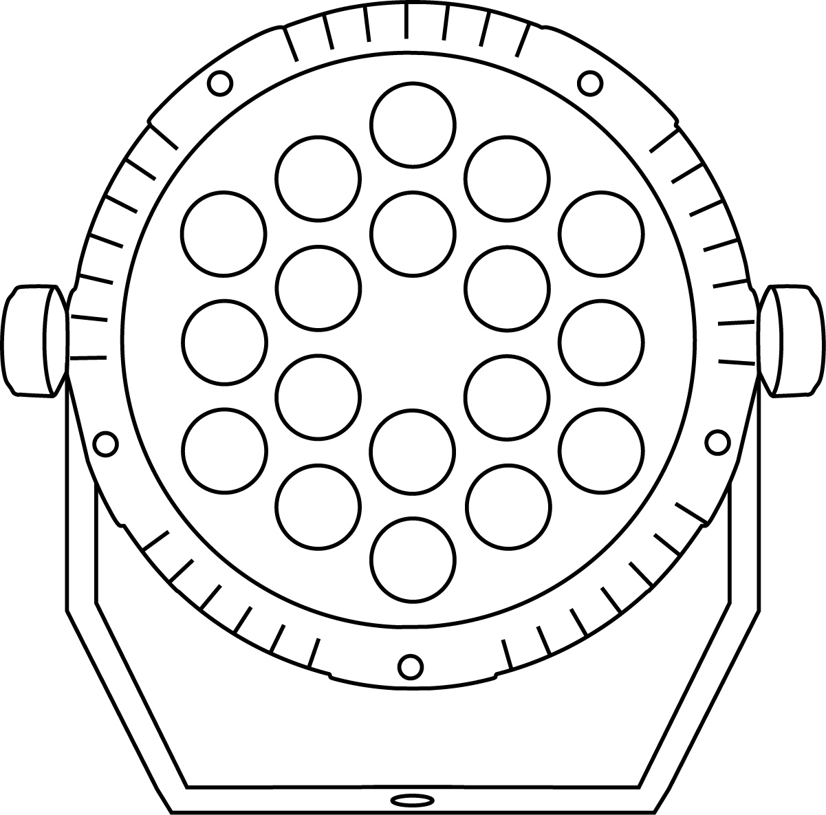 - Źródło światła: 18 × 18W LED RGBWA+UV 6w1 (czerwony, zielony, niebieski, biały, bursztynowy, ultrafiolet + kolory mieszane)
