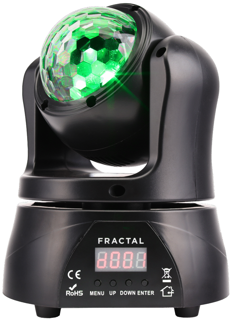 • Źródła światła: 1 × 15W RGBW 4w1 LED (soczewka z efektem kalejdoskopu), 4 × 10W RGBW 4w1 LED
