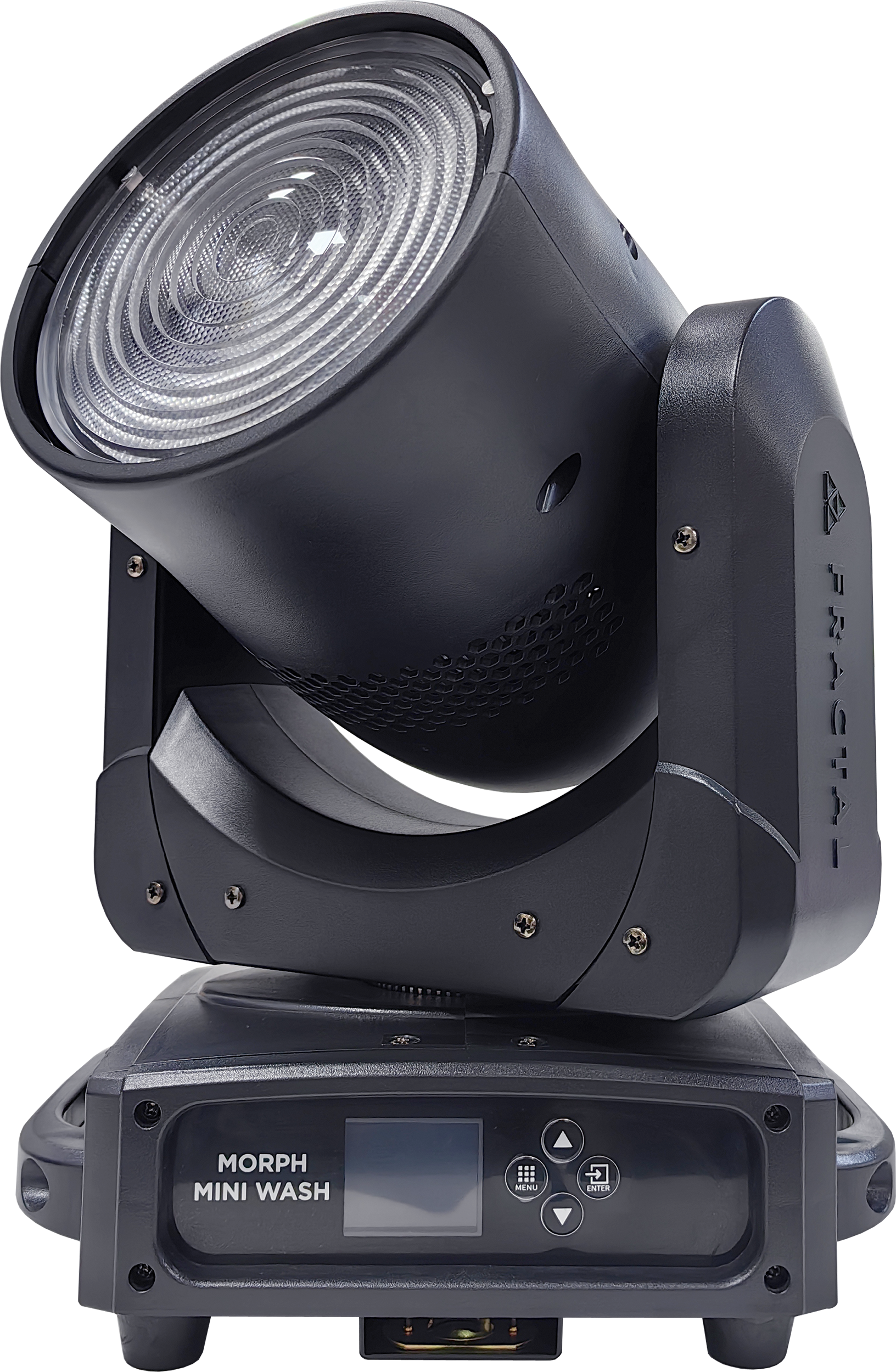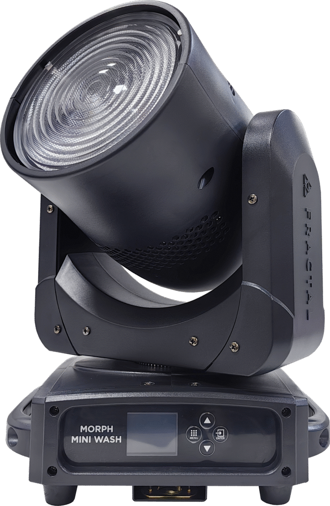 Fractal Morph MINI PIX WASH to głowa LED/Wash, która łączy nowoczesną technologię z klasycznym teatralnym charakterem. Dzięki soczewce Fresnela oferuje równomierną plamę światła, nawiązując stylistycznie do starych reflektorów teatralnych.